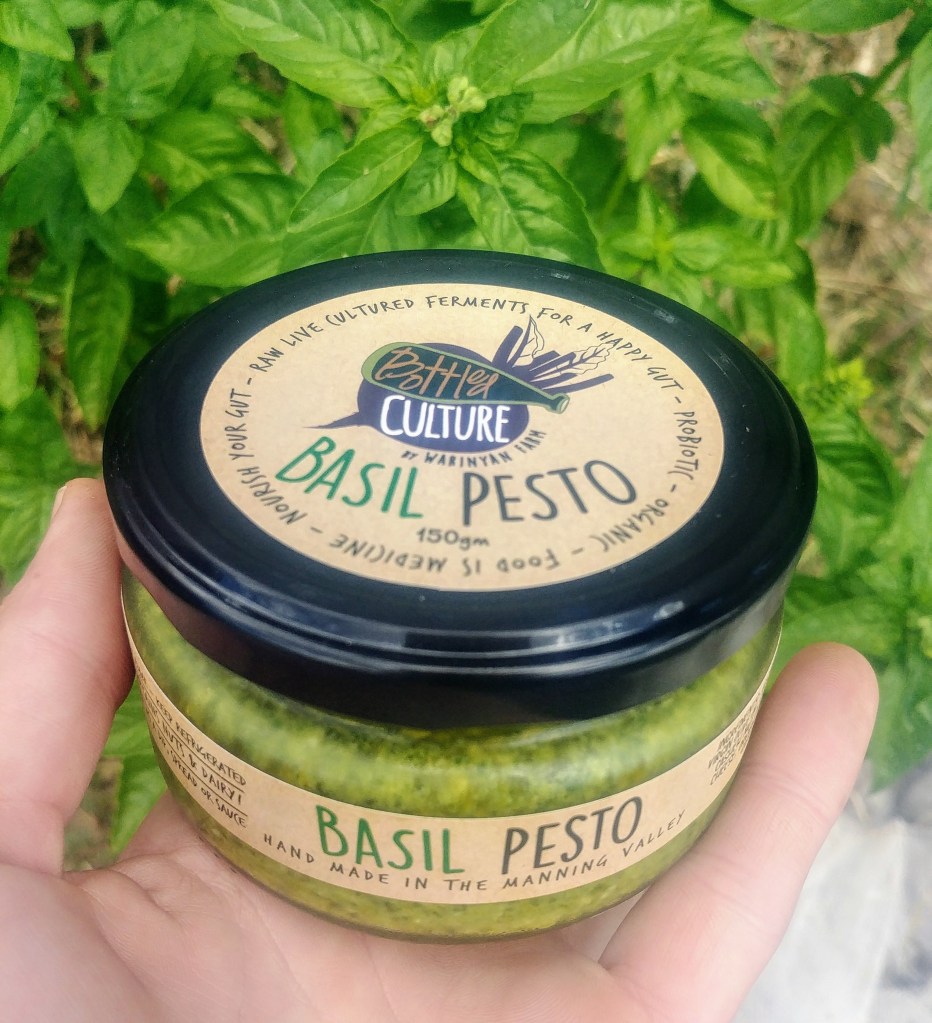 Ingredients: Australian Extra virgin olive oil (Melilanda), organic basil, organic cashew nuts, organic lemon juice, pecorino cheese (Comboyne Culture), organic sauerkraut juice, organic garlic, Himalayan salt.